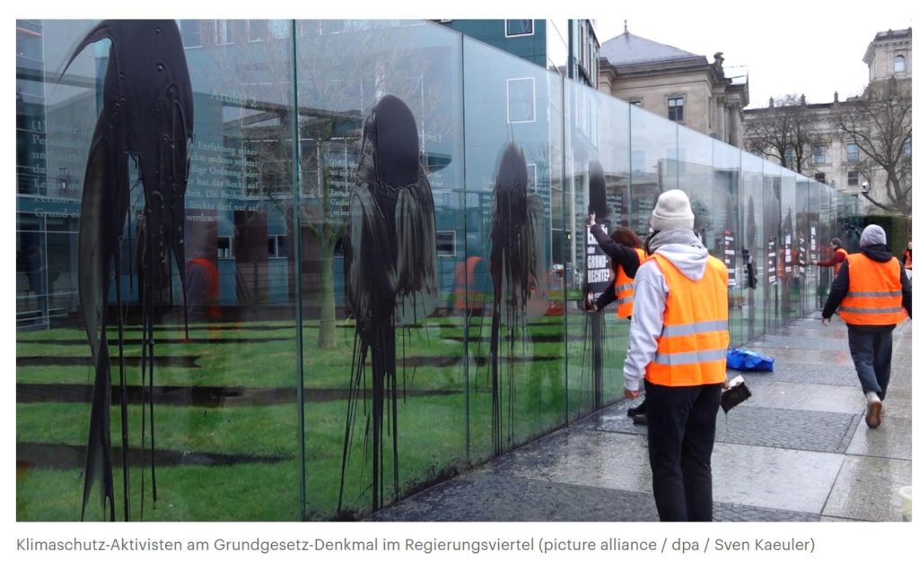 Bundesjustizminister Buschmann reagierte ebenfalls mit deutlicher Kritik. Der FDP-Politiker erklärte, die Gruppierung habe das Grundgesetz „in den Schmutz gezogen“. Dies könne nur falsch sein – egal, welche Botschaft damit habe ausgesendet werden sollen. Der Vorsitzende des Auswärtigen Ausschusses des Bundestages, Roth, bezeichnete die Tat als „billige, würdelose Aktion“. Der SPD-Politiker erklärte, die Aktivisten zerstörten Kunst „ähnlich wie die Taliban“.