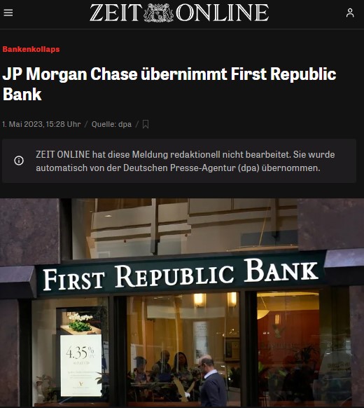 Quelle: https://www.zeit.de/news/2023-05/01/jp-morgan-chase-uebernimmt-first-republic-bank