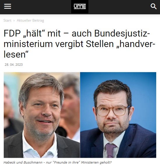 Dazu erklärte CDU-Politiker Martin Plum, „nicht nur bei Robert Habeck, sondern auch bei Marco Buschmann wird das Führungspersonal lieber handverlesen. Statt in einem geordneten Verfahren werden Spitzenpositionen auch im Bundesjustizministerium immer öfter ohne Ausschreibung besetzt.“