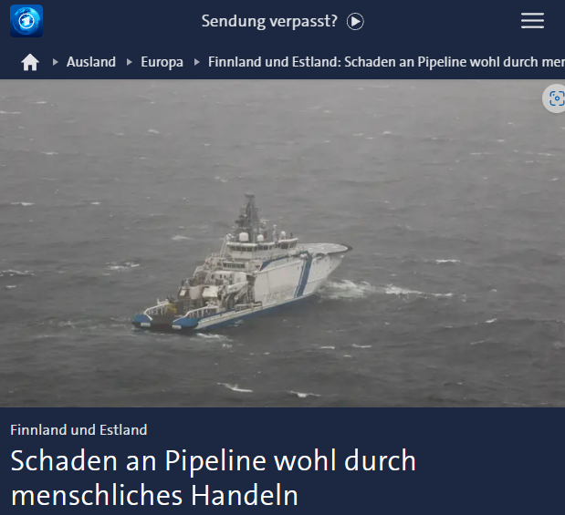 Weiterlesen: Finnland und Estland: Schaden an Pipeline wohl durch menschliches Handeln | tagesschau.de