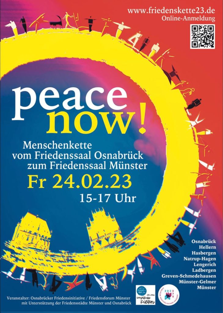 In den letzten 20 Jahren hat Deutschland sehr viel mehr Kriege mitbekommen, sich teilweise daran beteiligt und deren Auswirkungen erlebt und die Menschen müssten sehr viel besser dafür sensibilisiert sein. Doch es stellen sich Probleme heraus, die nur schwer nachzuvollziehen scheinen. Dieses Jahr ist für die Friedenskette ein bestimmtes Datum gewählt worden, der 24 Februar, da man damit an die Situation in der Ukraine gedenken möchte, doch auch ohne dieser, wäre die Friedenskette in diesem Jahr durchgeführt worden, da es das 375. Jubiläumsjahr der Verträge des Westfälischen Friedens ist. Es ist eine besondere Aktion, die ein starkes Friedenszeichen setzen soll, die in ihrer Symbolik kaum zu übertreffen wäre. Diesmal wird die Friedenskette nicht von den Städten Münster und Osnabrück organisiert, sondern von den Osnabrücker Friedensinitiative und dem Friedensforum Münster und wird von den Stadtverwaltungen von Osnabrück und Münster unterstützt. Vielleicht ist genau das auch der Kern der Organisationsschwierigkeiten.Kollektivschuld, Kontaktschuld und Gesinnungskontrolle.