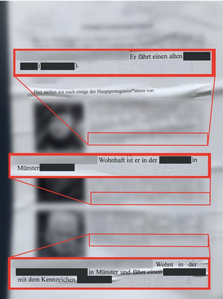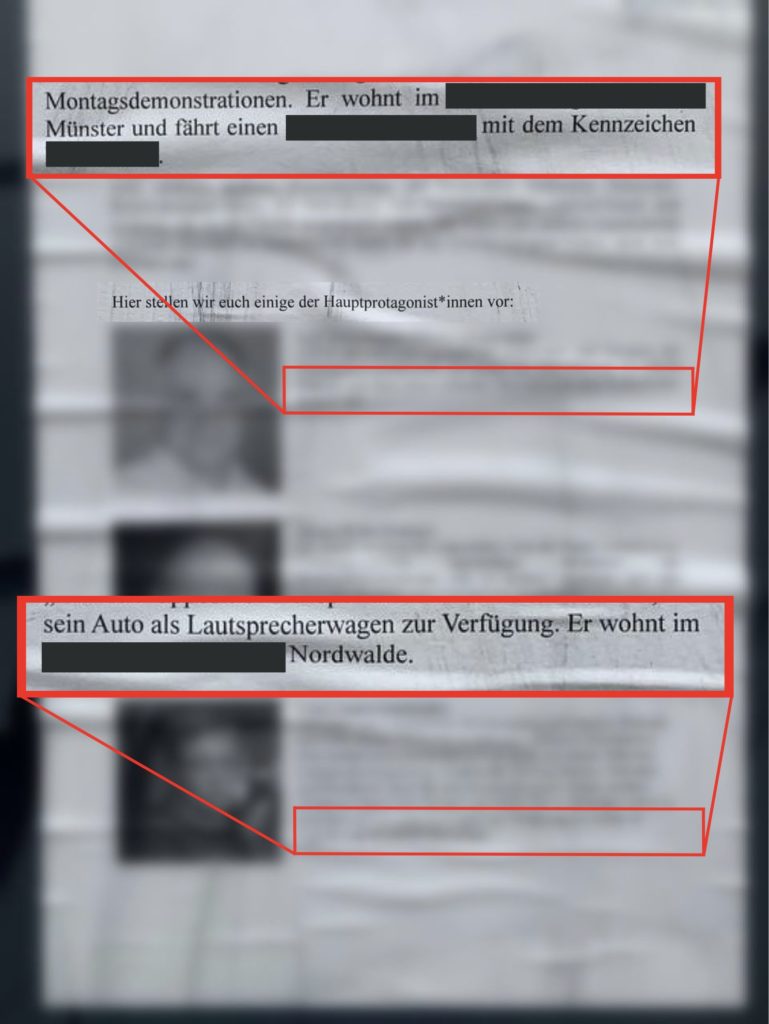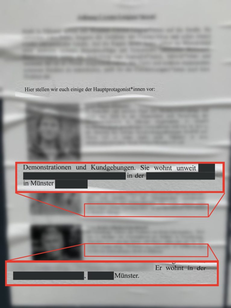 Paradox ist hier der Umstand, dass sich sowohl diese Gruppierung, als auch die „Münsterliste - bunt und international e.V.“, eine kommunale Wählervereinigung, die sich laut eigenen Angaben „basisdemokratisch“ bildet und auch so vorgeht und mit der örtlichen pseudo „Antifa“ agiert, als Verfechter von Freiheit, Frieden und Selbstbestimmung (politisch, siehe Internetauftritt) antreten. Dabei jedoch schrecken sie nicht vor solch undemokratischen Schritten zurück, wie Flugblätter in Münster anzubringen mit Fotos und Namen und teils persönlichen Daten über die Menschen, denen sie eigenbefindlich rechte Nazi-Gesinnung attestieren. Konfrontationsversuche seitens dieser verleumdeten Menschen verlieren sich in Beleidigungen und Parolenrufen seitens der angeblichen Verfechter des demokratischen Rechts und der Ordnung.