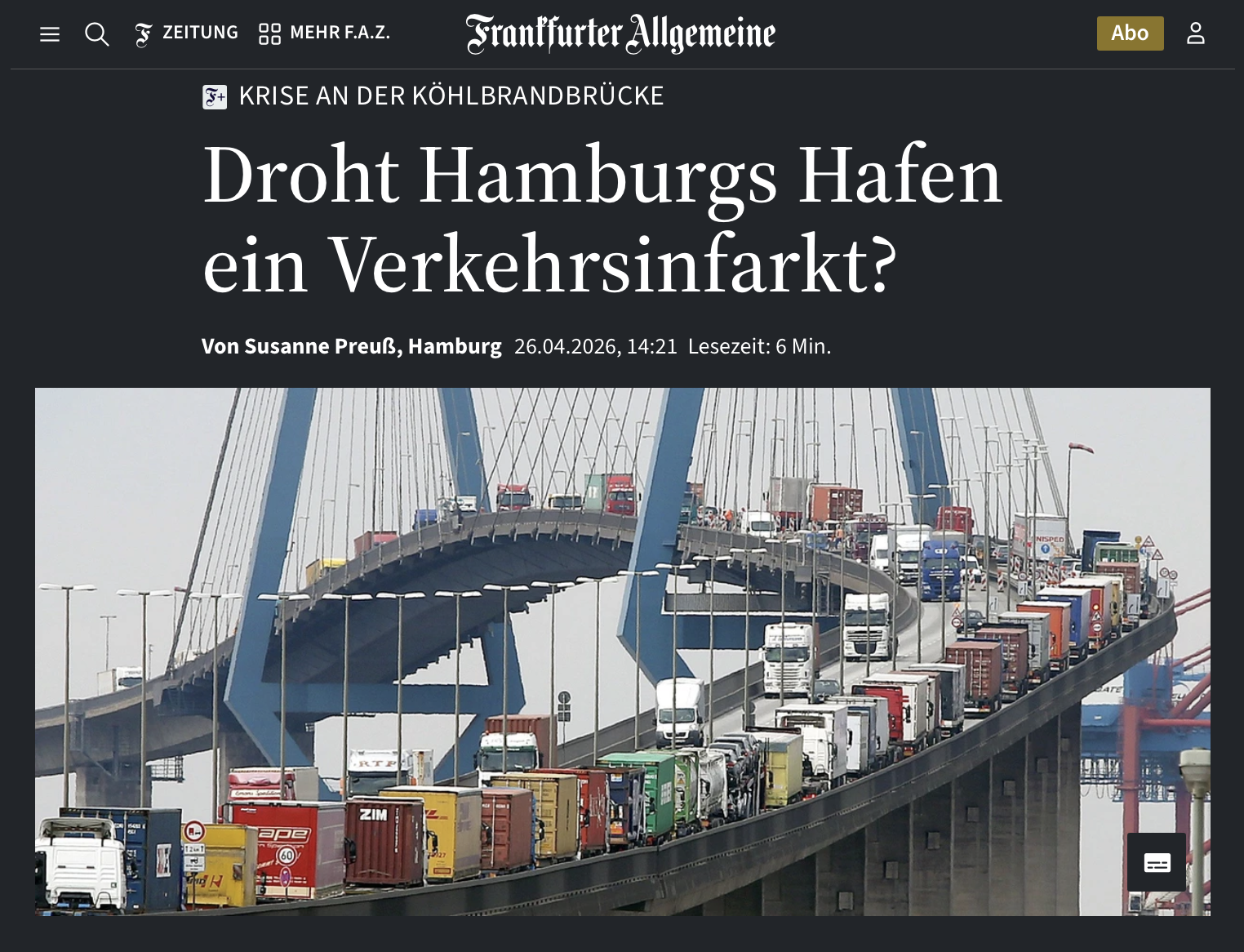 Die legendäre Köhlbrandbrücke im Hamburger Hafen wird von Mai an für Schwertransporte gesperrt. Das ist auch ein Problem für die Exportnation Deutschland.