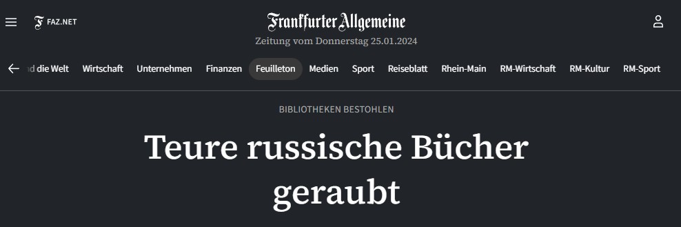 Weiterlesen: https://zeitung.faz.net/faz/feuilleton/2024-01-25/teure-russische-buecher-geraubt/985293.html