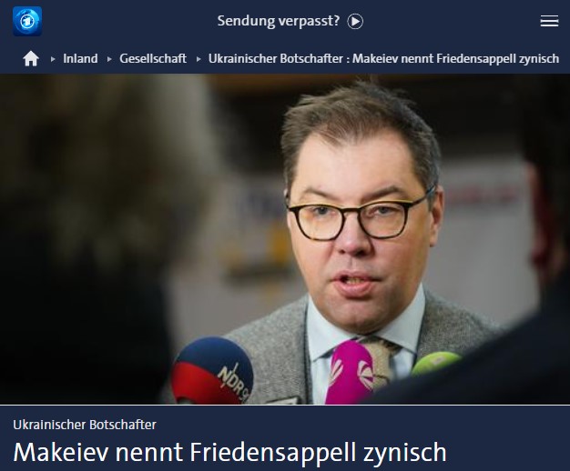 Der ukrainische Botschafter Oleksii Makeiev hat den Aufruf ehemaliger hochrangiger SPD-Politiker und Gewerkschafter zu Friedensverhandlungen zwischen Russland und der Ukraine scharf kritisiert. "Dieser Friedensappell ist kein Aprilscherz. Das ist ein purer Zynismus gegenüber den zahlreichen Opfern der russischen Aggression", sagte Makeiev der Nachrichtenagentur dpa. Er habe nur eins zum Ziel: "Die Verbrechen Russlands und dementsprechend die Verantwortung des russischen Regimes zu verschleiern."