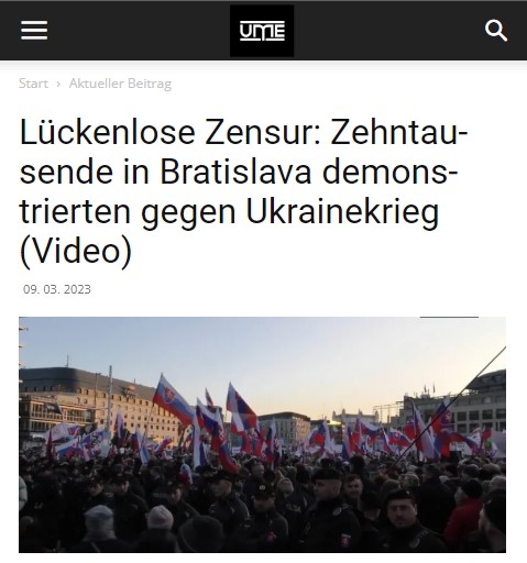 In der slowakischen Hauptstadt hat demnach bereits am 3. März eine Kundgebung mit Zehntausenden stattgefunden. Die Demonstranten skandierten: „Amerika ab nach Hause!“ und „Rossiya! Rossiya!“ („Russland! Russland!“).