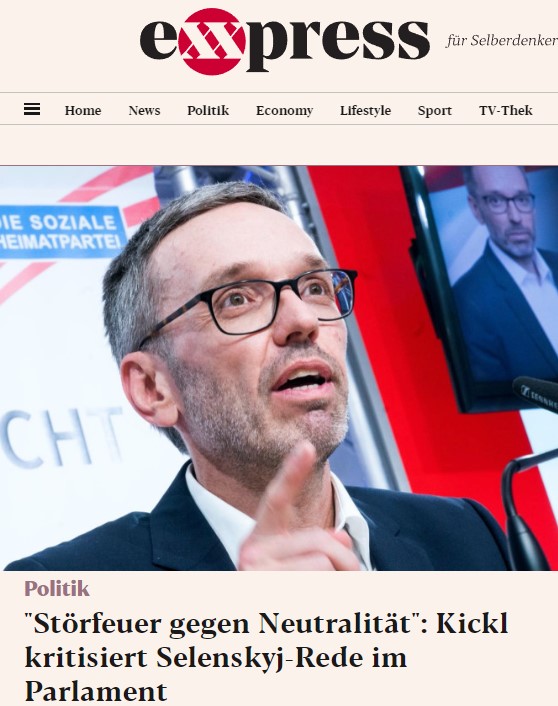 Quelle: https://exxpress.at/stoerfeuer-gegen-neutralitaet-kickl-kritisiert-selenskyj-rede-im-parlament/